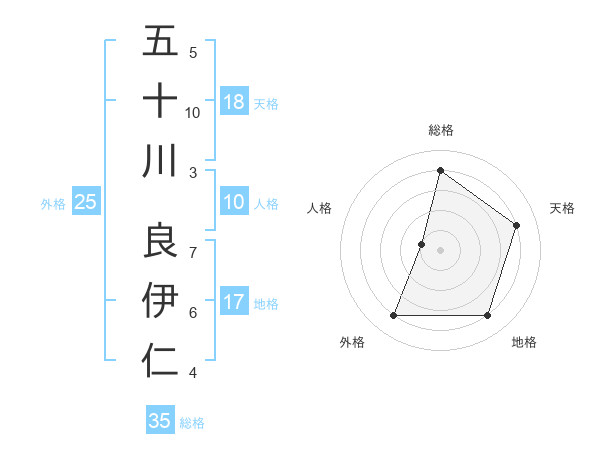 五十川 良伊仁さんを姓名の画数から五運を鑑定