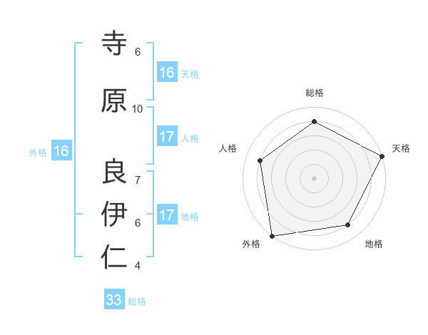寺原 良伊仁さんを姓名の画数から五運を鑑定