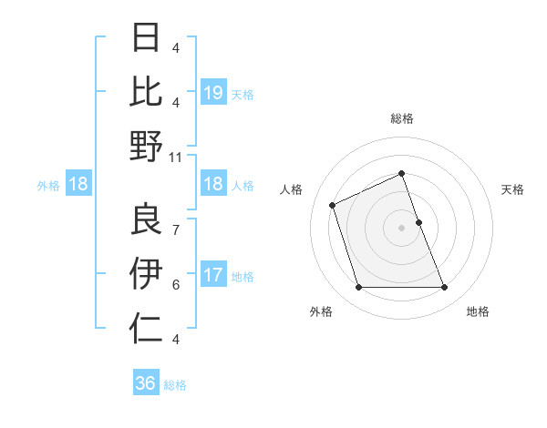 日比野 良伊仁さんの天格は19画の1点!