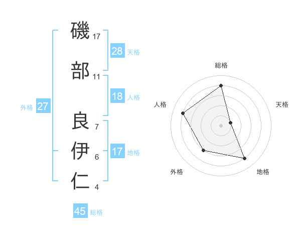 磯部 良伊仁さんを姓名の画数から五運を鑑定