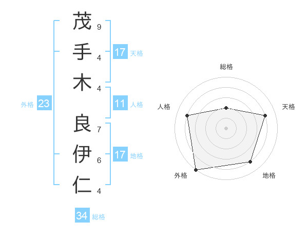 茂手木 良伊仁さんを姓名の画数から五運を鑑定