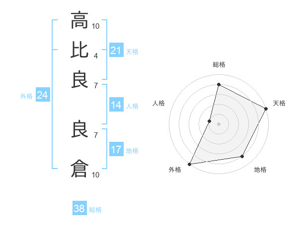 高比良 良倉さんの総格は38画の4点!