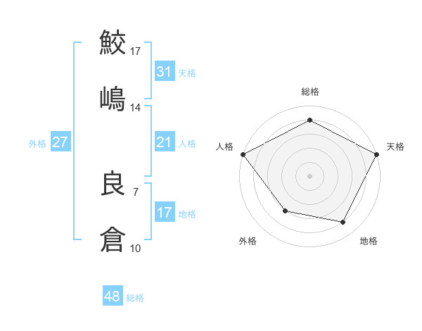 鮫嶋 良倉さんを姓名の画数から五運を鑑定