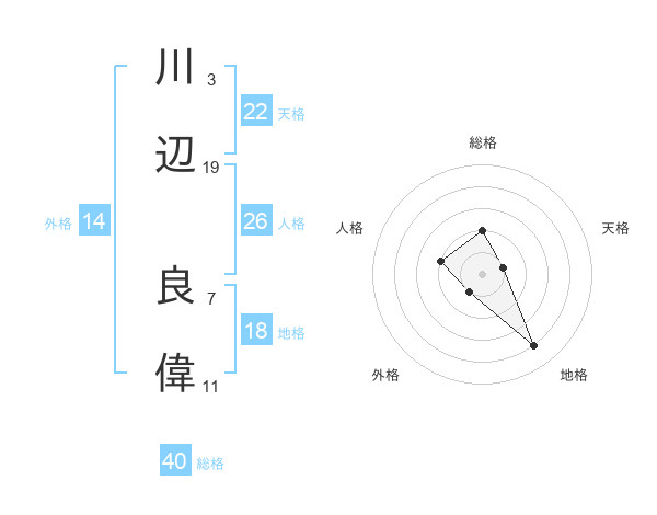 川辺 良偉さんの天格は22画の1点!