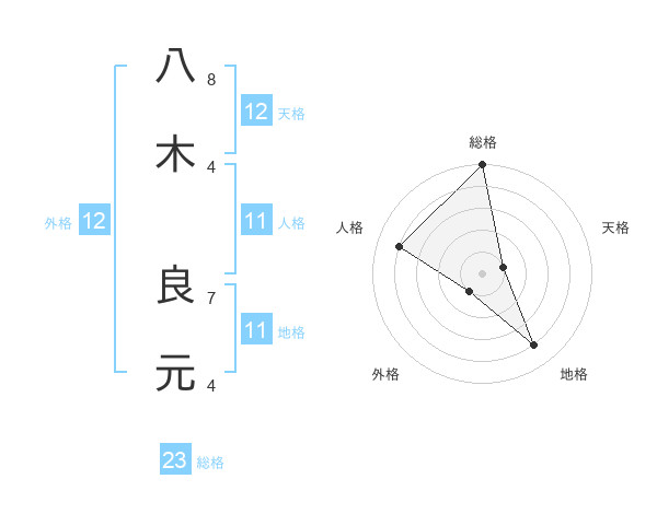 八木 良元さんの総格は23画の5点!