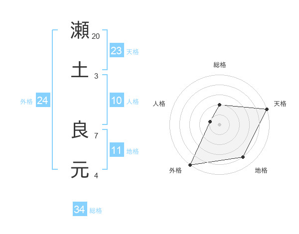 瀬土 良元さんの総格は34画の2点!