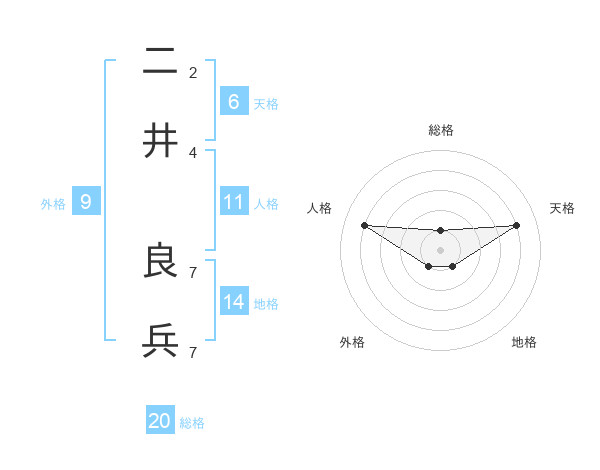 二井 良兵さんの総格は20画の1点!