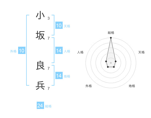 小坂 良兵さんを姓名の画数から五運を鑑定