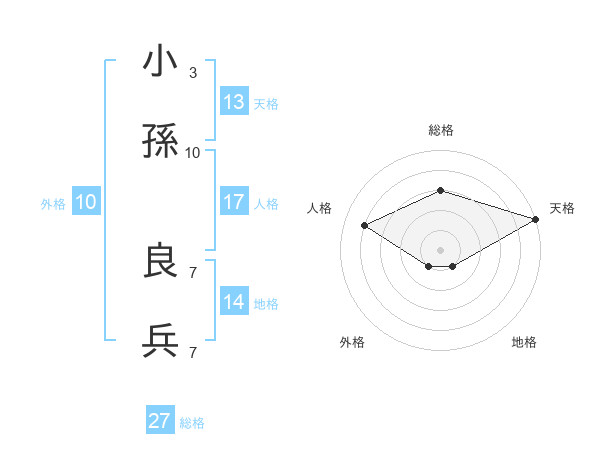 小孫 良兵さんの天格は13画の5点!