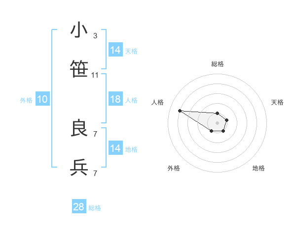 小笹 良兵さんを姓名の画数から五運を鑑定