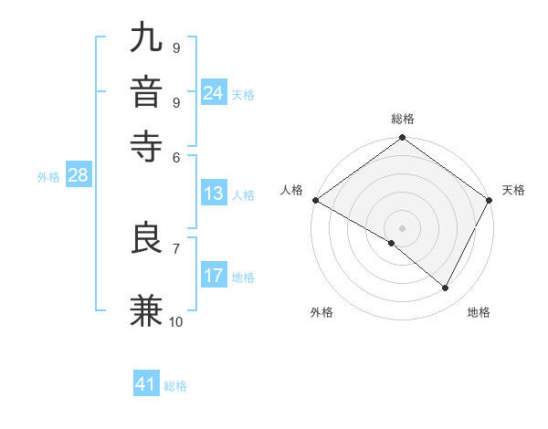九音寺 良兼さんを姓名の画数から五運を鑑定