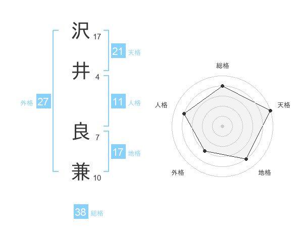 沢井 良兼さんの総格は38画の4点!