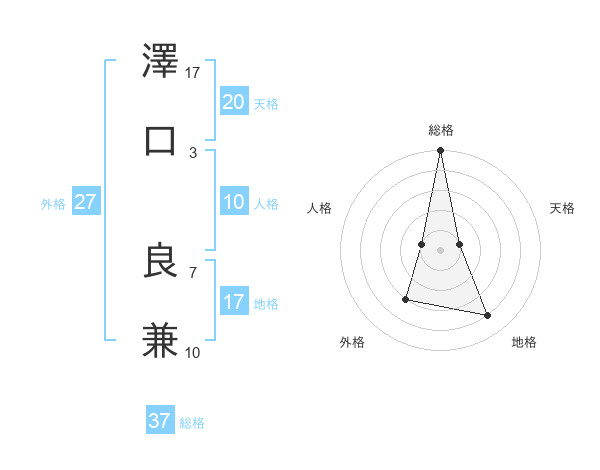 澤口 良兼さんの総格は37画の5点!