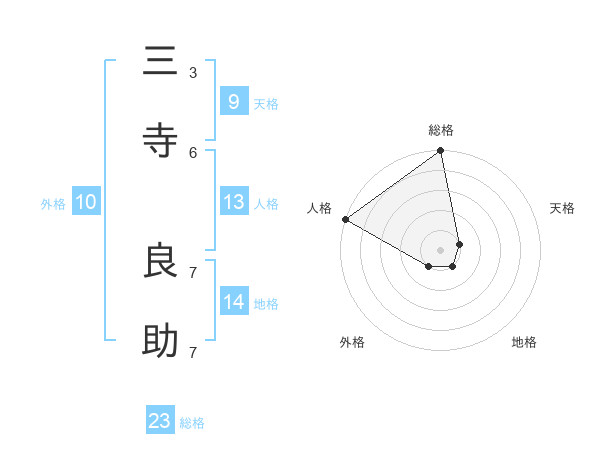 三寺 良助さんの総格は23画の5点!