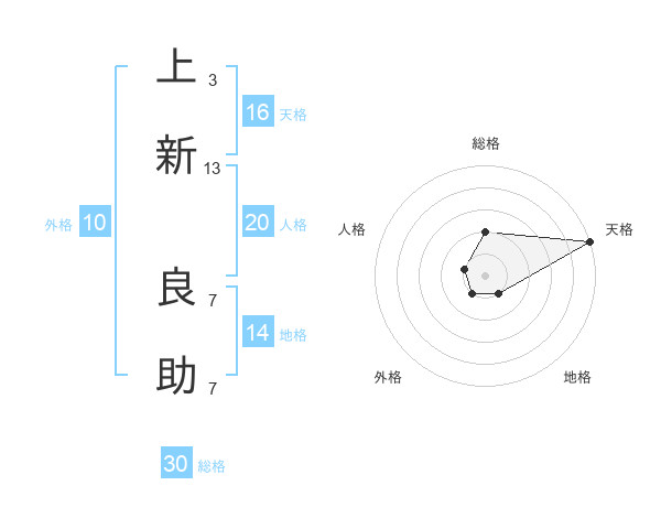 上新 良助さんの総格は30画の2点!