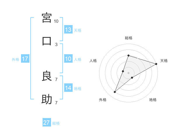 家系が持つ宿命的な運勢を表します。祖先から受け継いだ苗字ですので自分の力が及びません。家柄を象徴します。