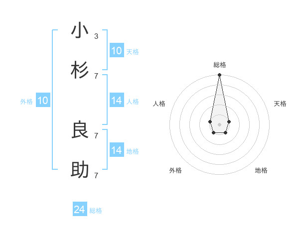 小杉 良助さんの総格は24画の5点!