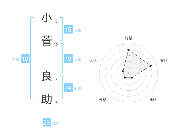 小菅 良助さんの総格は29画の4点!