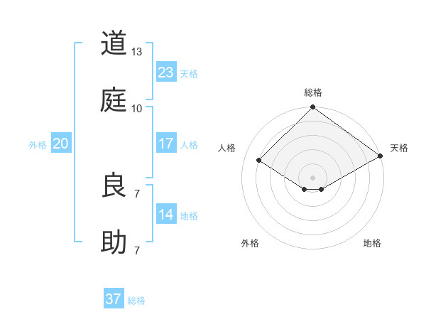 道庭 良助さんの総格は37画の5点!