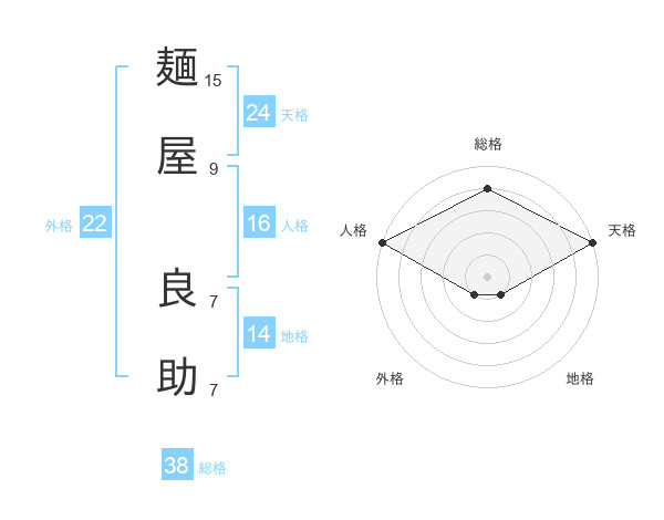 麺屋 良助さんを姓名の画数から五運を鑑定