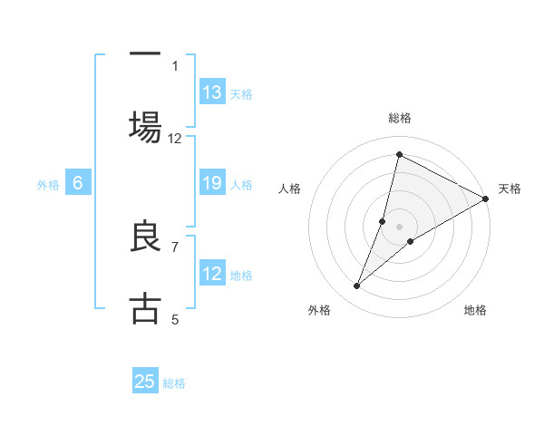 一場 良古さんの総格は25画の4点!