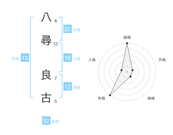 八尋 良古さんの総格は32画の5点!