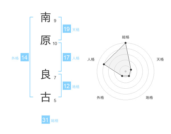 南原 良古さんの総格は31画の5点!