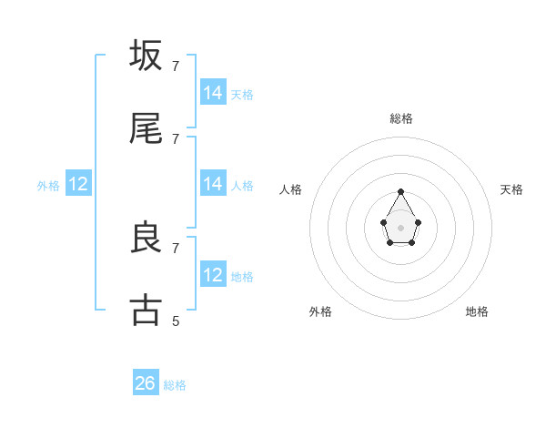 坂尾 良古さんを姓名の画数から五運を鑑定