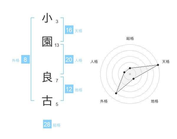 小園 良古さんの総格は28画の1点!