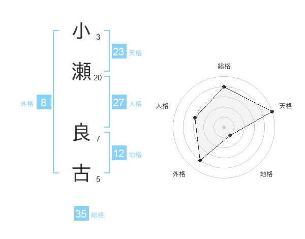小瀬 良古さんの総格は35画の4点!
