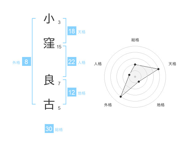 小窪 良古さんの総格は30画の2点!