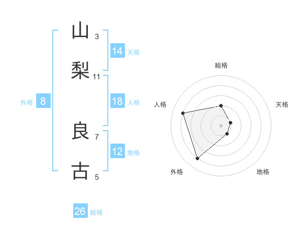 家系が持つ宿命的な運勢を表します。祖先から受け継いだ苗字ですので自分の力が及びません。家柄を象徴します。