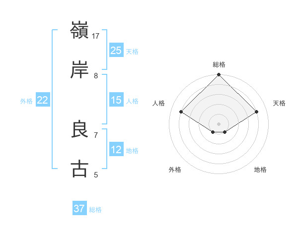 嶺岸 良古さんの総格は37画の5点!