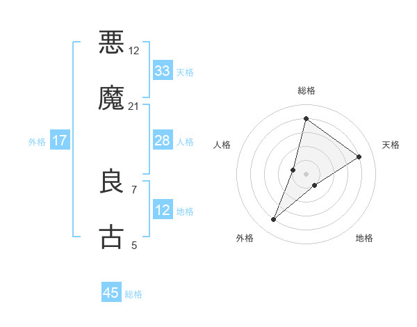悪魔 良古さんを姓名の画数から五運を鑑定