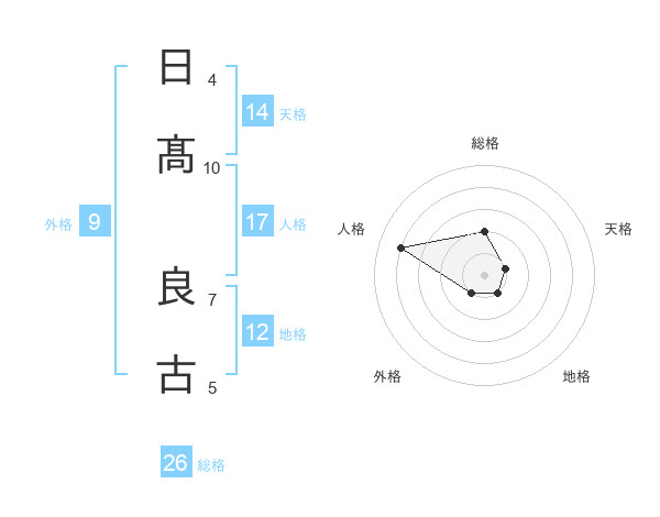日髙 良古さんを姓名の画数から五運を鑑定