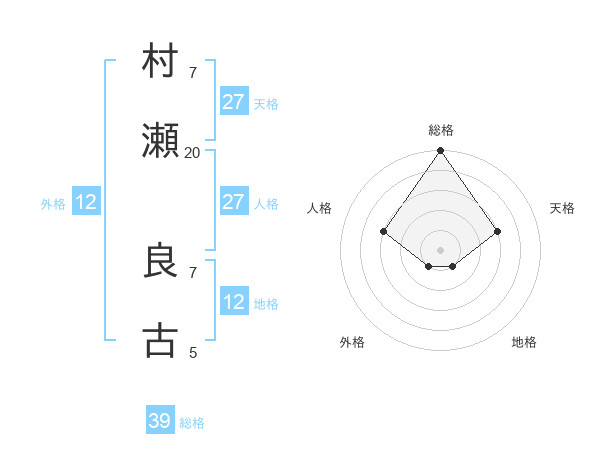 村瀬 良古さんの総格は39画の5点!