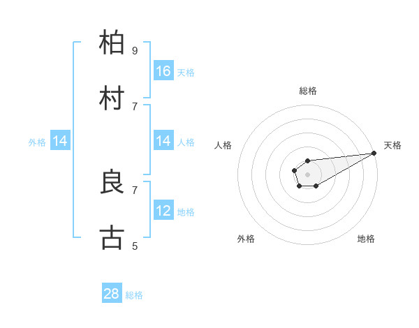 柏村 良古さんの総格は28画の1点!