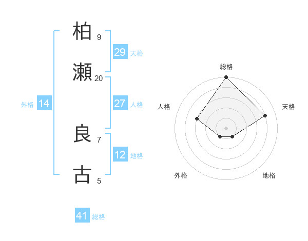柏瀬 良古さんの総格は41画の5点!