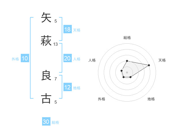 矢萩 良古さんの総格は30画の2点!