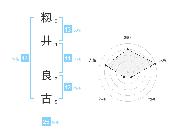 籾井 良古さんの総格は25画の4点!
