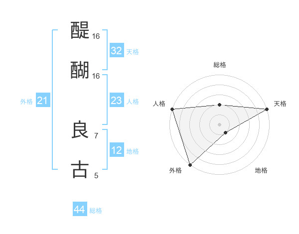 醍醐 良古さんを姓名の画数から五運を鑑定