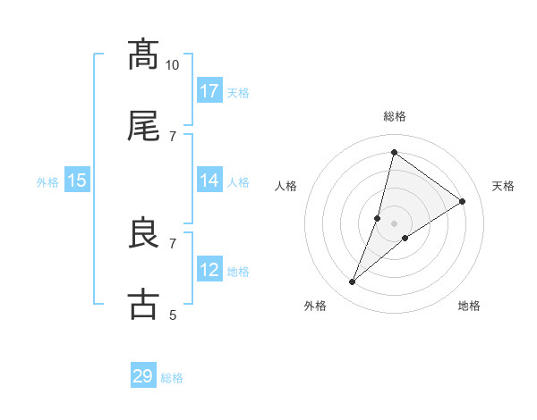 髙尾 良古さんの総格は29画の4点!