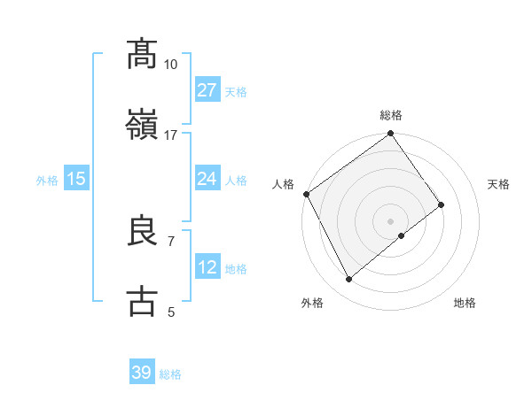 髙嶺 良古さんの総格は39画の5点!