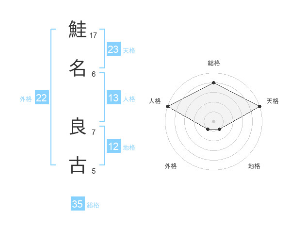 鮭名 良古さんの総格は35画の4点!