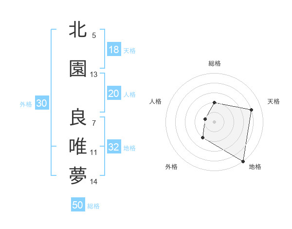 北園 良唯夢さんの総格は50画の2点!