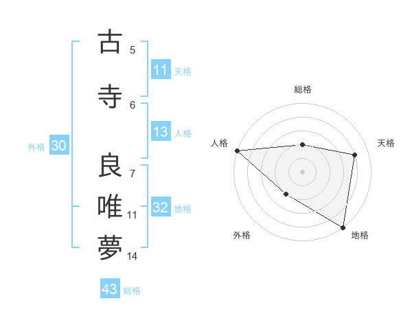 古寺 良唯夢さんを姓名の画数から五運を鑑定