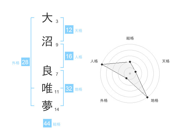 大沼 良唯夢さんの総格は44画の2点