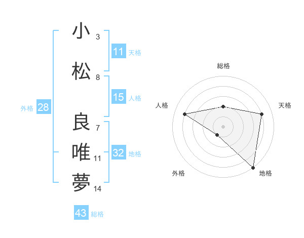 小松 良唯夢さんを姓名の画数から五運を鑑定