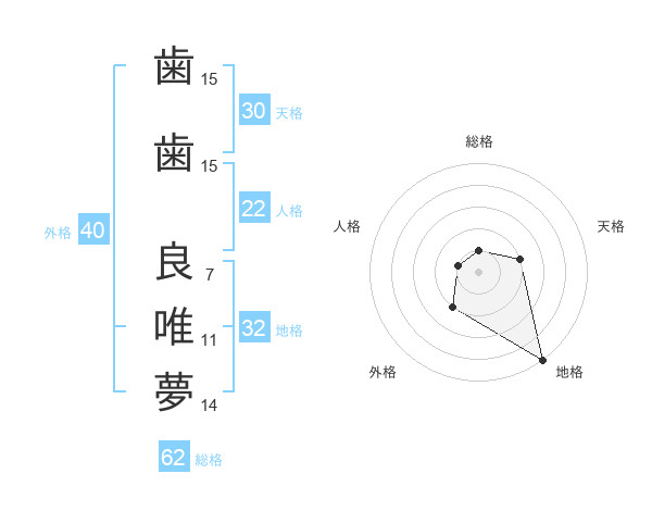 歯歯 良唯夢さんの地格は32画の5点!