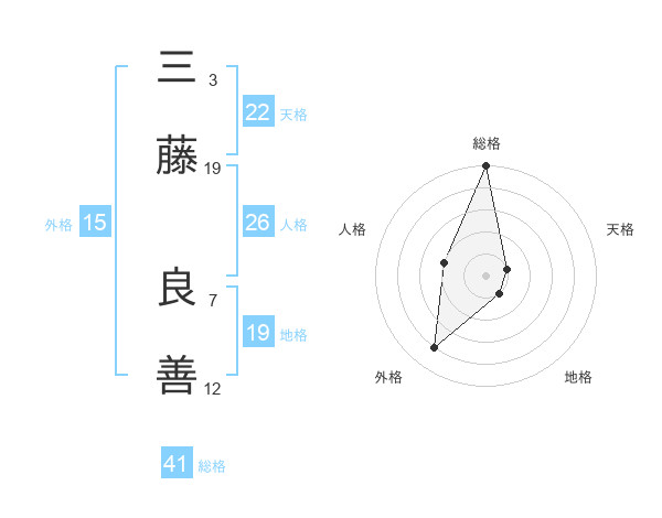 三藤 良善さんの総格は41画の5点!